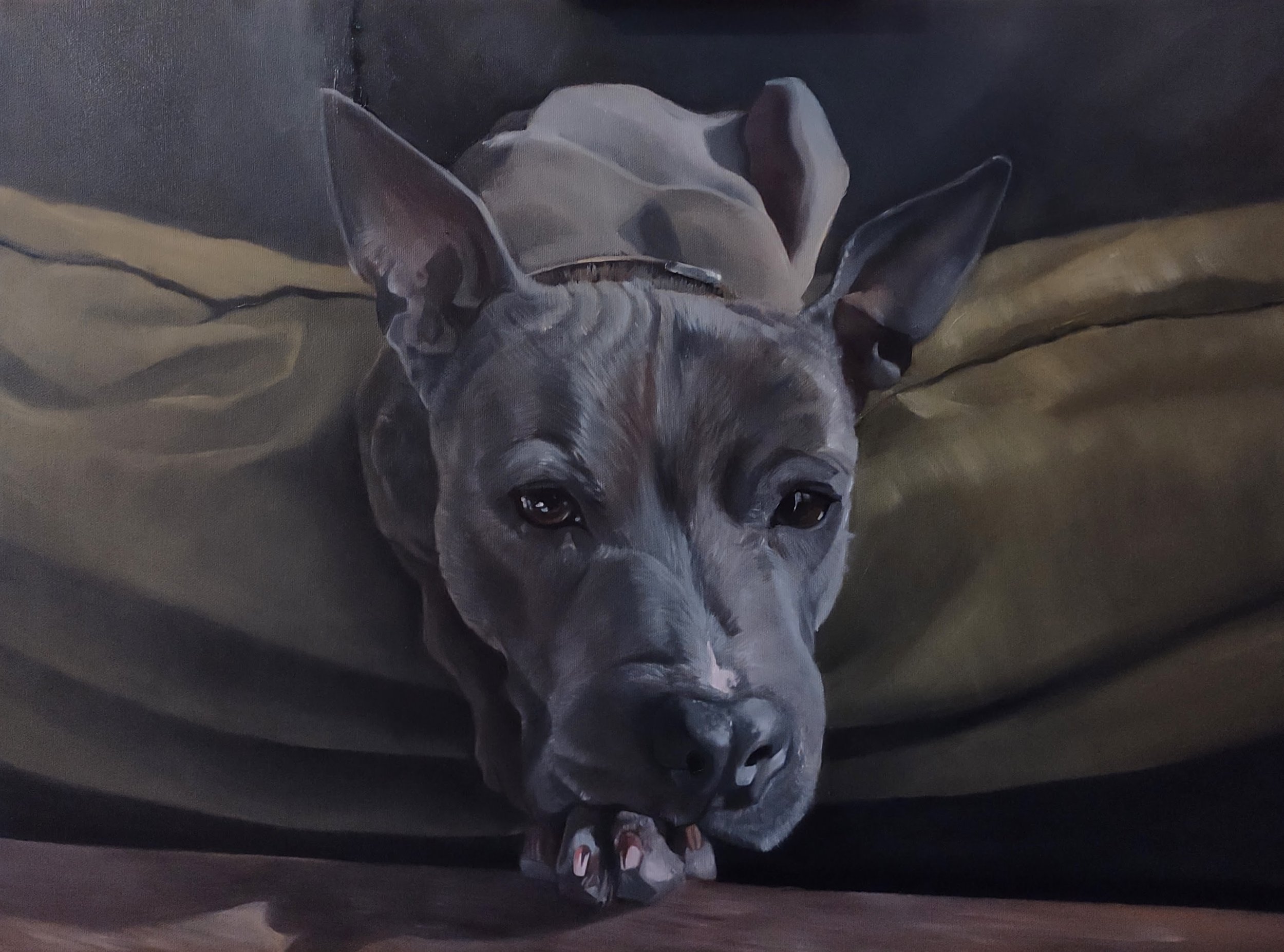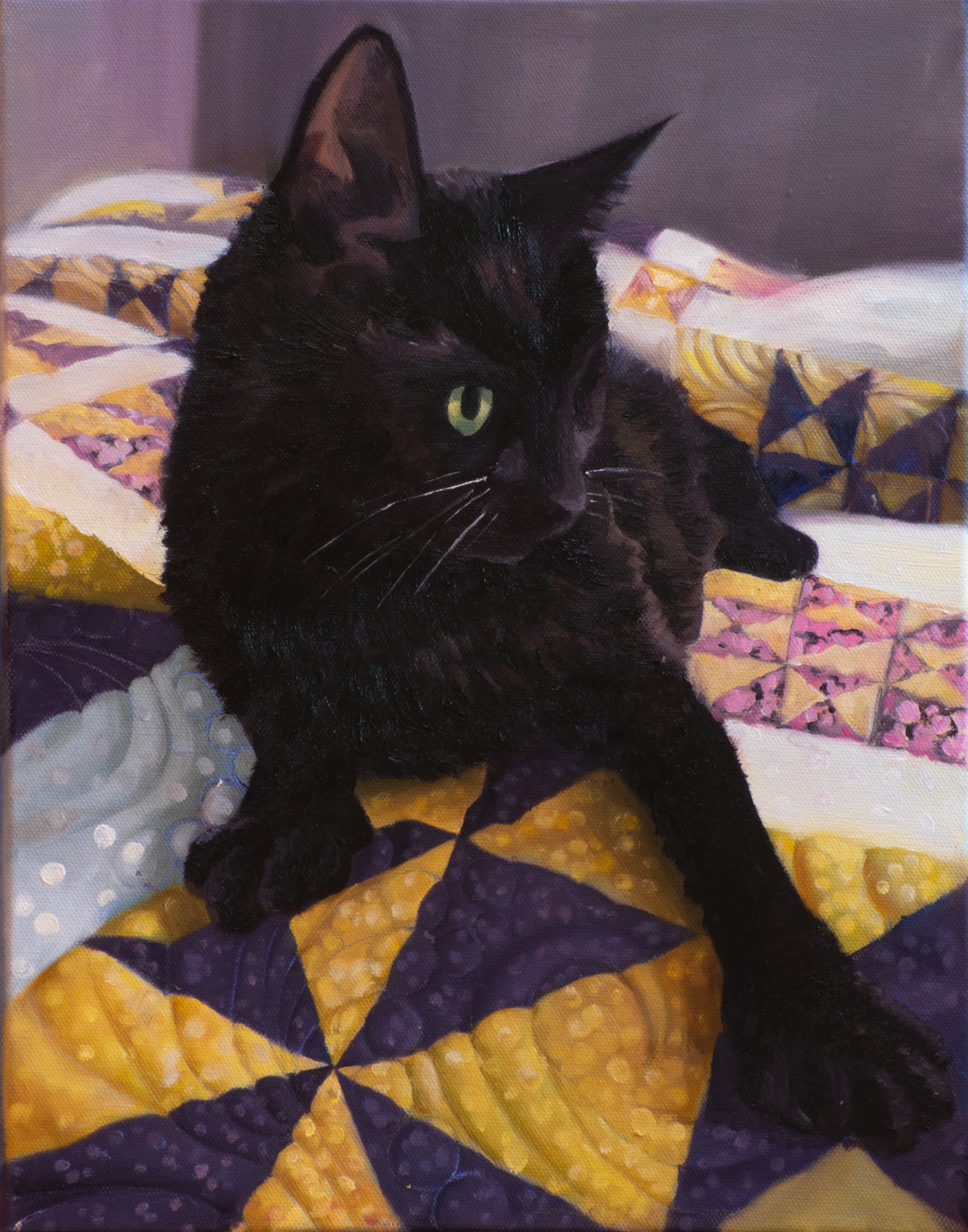 I paint quickly, but oil paint dries slowly. Approximate turnaround is 2 weeks for small pieces and one month for larger.
